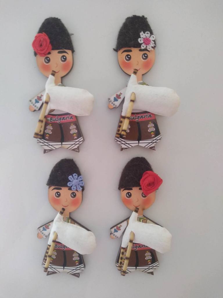 Малка гайда магнит размер 3/6см. цена 2.56 €Средна гайда магнит размер 6/9см. цена 3.07 €Малък тъпан магнит размер 3/4см. цена 2.56 €Среден тъпан магнит размер 4/6см.цена 3.07 €Комплект мини гайда и тъпан- магнит р-р 5,5/7см. цена 3.07 €Гайдарка магнит размери 4/7см. цена 3.07 €Гайдар магнит размери 4/9см. цена 3.07 €Торбичка с розова есенция – магнит р-р 4х5см. цена 2.56 €Кукер магнит в цял ръст размер 4/7см. цена 3.07 €Овца магнит размер 6 см. цена 2.56 €